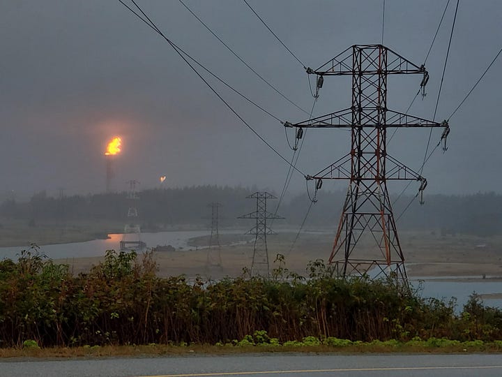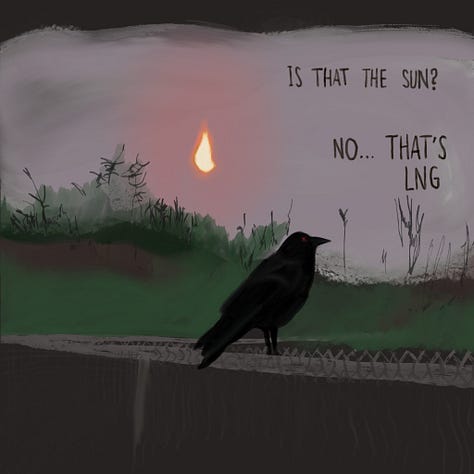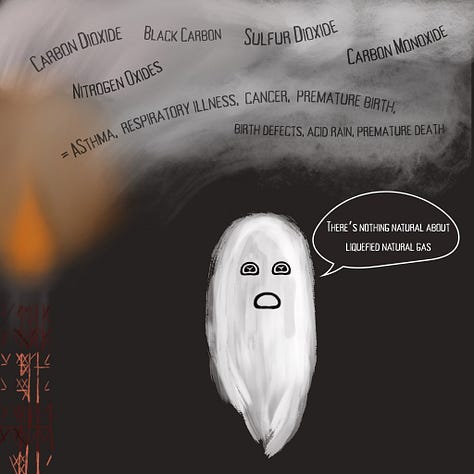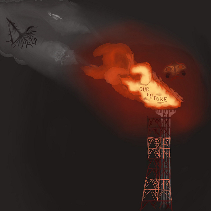 These pictures are inspired by the flare in Kitimat, BC. Some of the health impacts related to LNG that occur at every step of the process, including fracking, production, exportation, and burning, are scary and can often be deadly for humans, wildlife, and the environment.